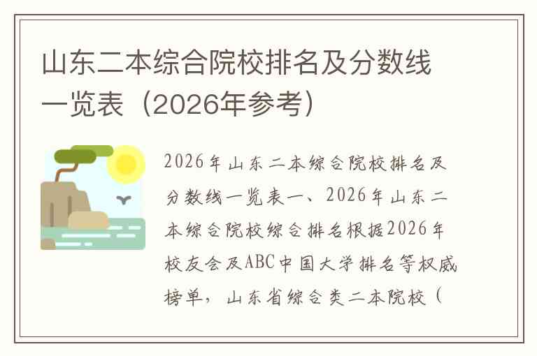 一、2026年山东二本综合院校综合排名