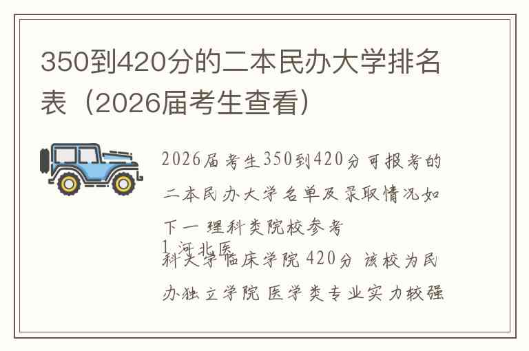 2026届考生350到420分可报考的二本民办大学名单及录取情况如下