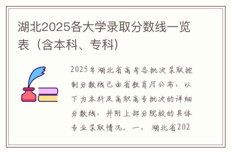 2025年湖北省高考各批次录取控制分数线已由省教育厅公布,以下为本科及高职高专批次的详细分数线,并附上部分院校的具体专业录取情况。