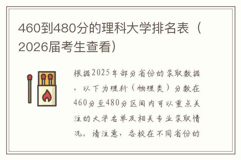 根据2025年部分省份的录取数据,以下为理科(物理类)分数在460分至480分区间内可以重点关注的大学名单及相关专业录取情况。请注意,各校在不同省份的录取分数线存在差异,以下数据可供参考,具体填报时需结合本省当年实际情况。
