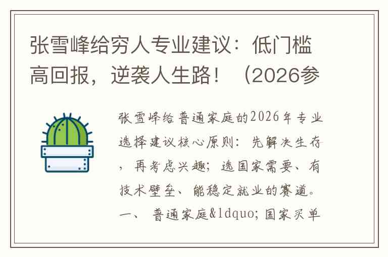 张雪峰给普通家庭的2026年专业选择建议