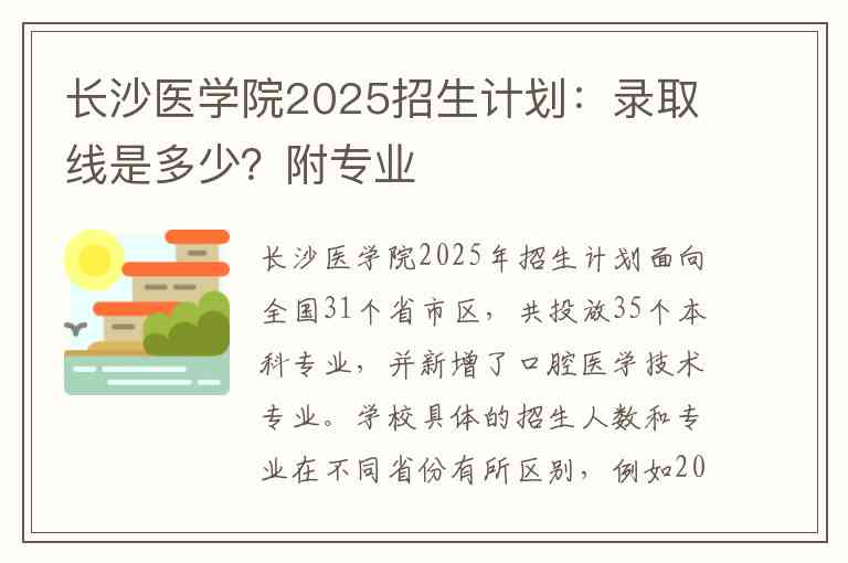 以上数据仅供参考,具体准确的招生计划及录取分数应以各省教育考试院官方公布的数据为准。如需了解更详细的信息或最新动态,可直接致电学校招生办公室0731-82858888或访问其官网http://www.csmu.edu.cn查询。