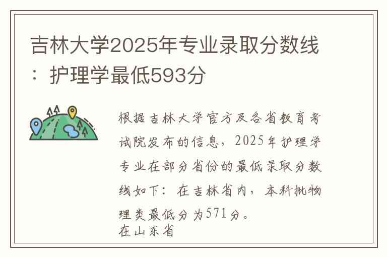 根据吉林大学官方及各省教育考试院发布的信息,2025年护理学专业在部分省份的最低录取分数线如下: