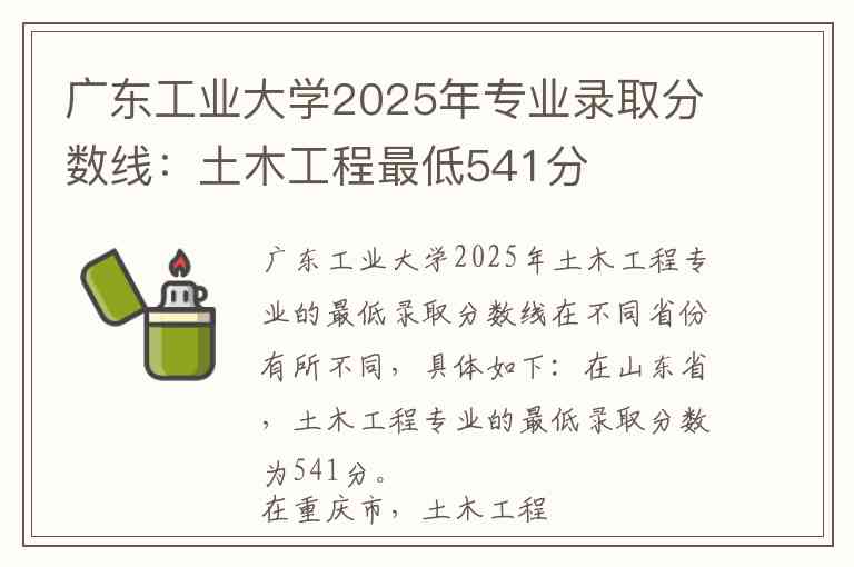 广东工业大学2025年土木工程专业的最低录取分数线在不同省份有所不同,具体如下:
