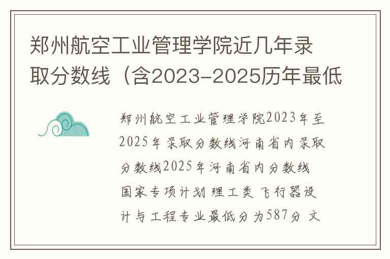郑州航空工业管理学院2023年至2025年录取分数线