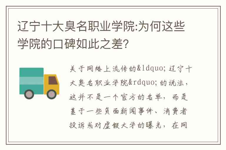 关于网络上流传的“辽宁十大臭名职业学院”的说法,这并不是一个官方的名单,而是基于一些负面新闻事件、消费者投诉或对虚假大学的曝光,在网络上形成的舆论标签。导致这些学院口碑不佳的原因主要集中在以下几个方面: