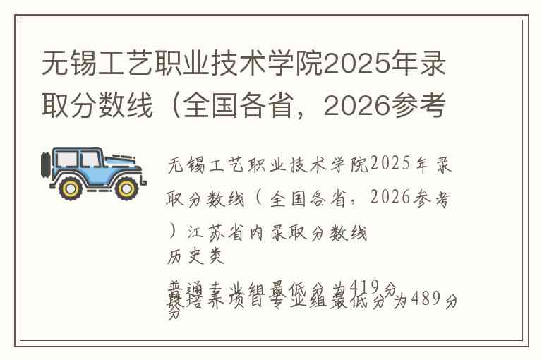 无锡工艺职业技术学院2025年录取分数线(全国各省,2026参考)