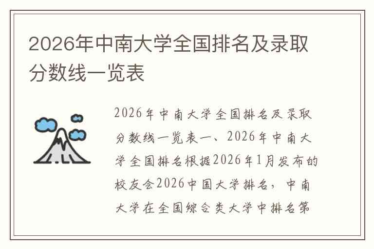 根据2026年1月发布的校友会2026中国大学排名,中南大学在全国综合类大学中排名第15位,被评为7★级世界知名高水平大学。