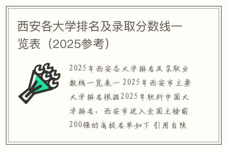 根据2025年软科中国大学排名,西安市进入全国主榜前200强的高校名单如下 引用自陕西省人民政府官网及新华网发布的2025软科排名数据