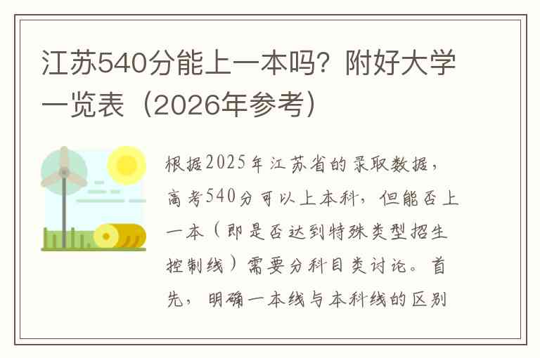 根据2025年江苏省的录取数据,高考540分可以上本科,但能否上一本(即是否达到特殊类型招生控制线)需要分科目类讨论。