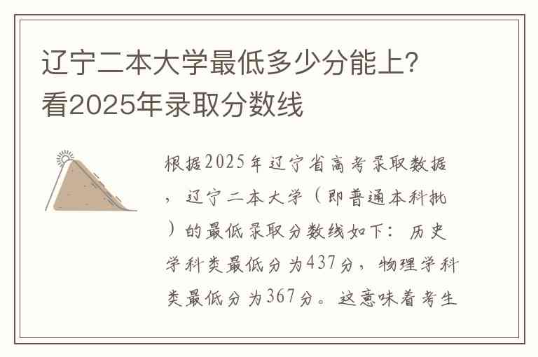 根据2025年辽宁省高考录取数据,辽宁二本大学(即普通本科批)的最低录取分数线如下: