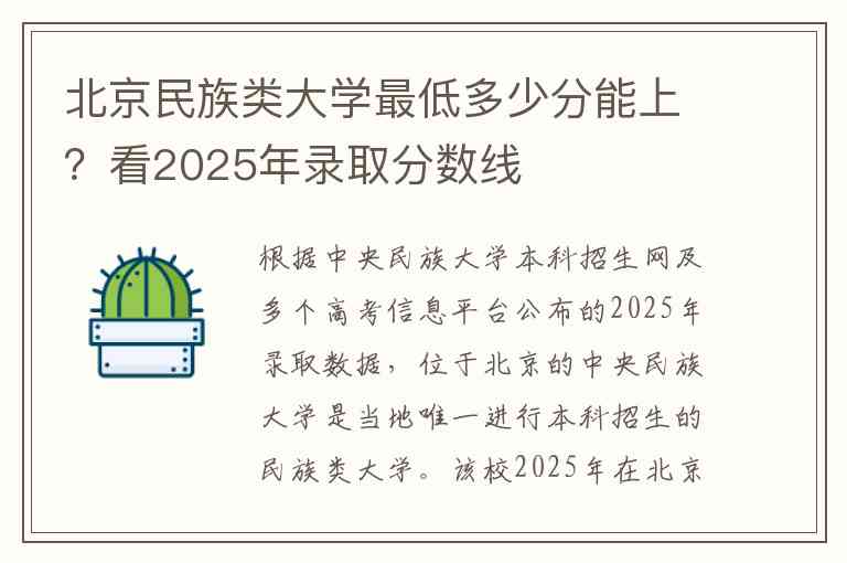 根据中央民族大学本科招生网及多个高考信息平台公布的2025年录取数据,位于北京的中央民族大学是当地唯一进行本科招生的民族类大学。该校2025年在北京市的最低录取分数线根据招生类型和专业组的不同有所区别,具体信息如下: