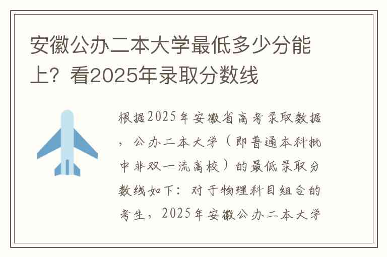 根据2025年安徽省高考录取数据,公办二本大学(即普通本科批中非双一流高校)的最低录取分数线如下: