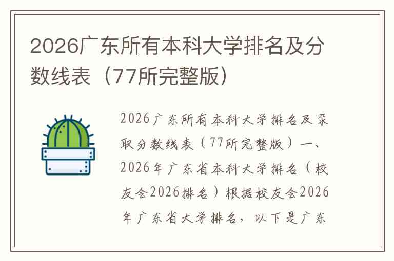 2026广东所有本科大学排名及录取分数线表(77所完整版)