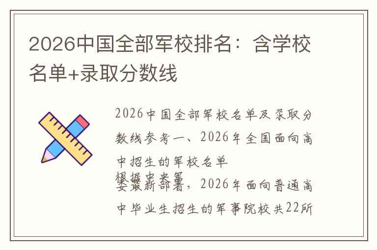 根据中央军委最新部署,2026年面向普通高中毕业生招生的军事院校共22所,具体名单如下: