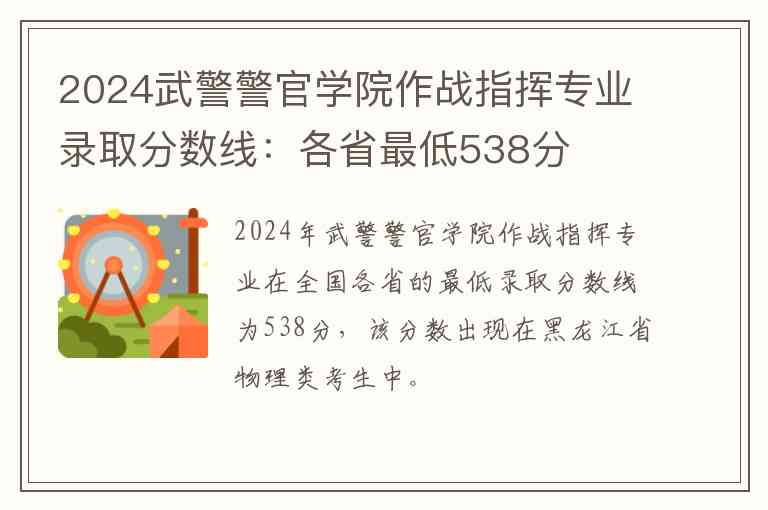 2024年武警警官学院作战指挥专业在全国各省的最低录取分数线为538分,该分数出现在黑龙江省物理类考生中