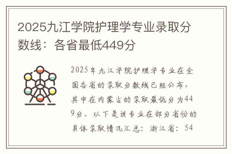 2025年九江学院护理学专业在全国各省的录取分数线已经公布,其中在内蒙古的录取最低分为449分。