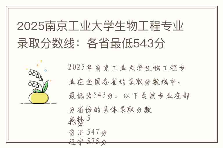 2025年南京工业大学生物工程专业在全国各省的录取分数线中,最低为543分