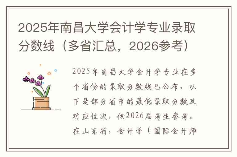 2025年南昌大学会计学专业在多个省份的录取分数线已公布,以下是部分省市的最低录取分数及对应位次,供2026届考生参考。
