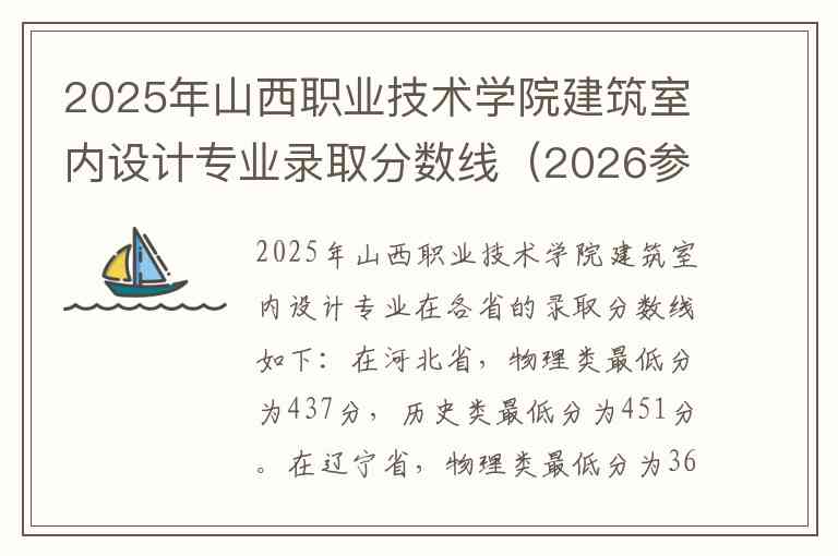 2025年山西职业技术学院建筑室内设计专业在各省的录取分数线如下: