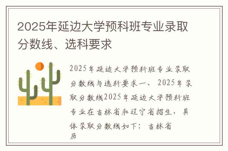 2025年延边大学预科班专业在吉林省和辽宁省招生,具体录取分数线如下: