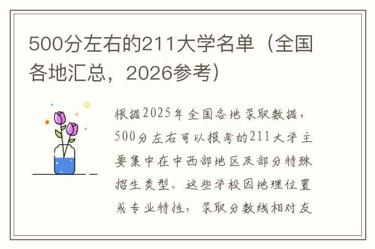 以下是各地500分左右的211大学名单及录取情况汇总,供2026届考生参考: