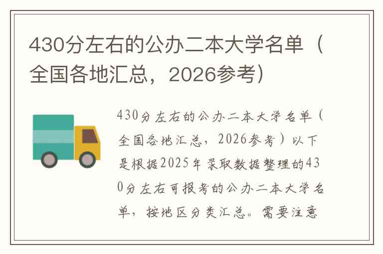 430分左右的公办二本大学名单(全国各地汇总,2026参考)