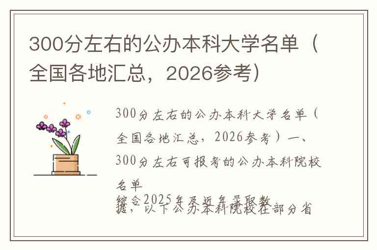 综合2025年及近年录取数据,以下公办本科院校在部分省份录取分数线稳定在300分上下,可供2026年考生参考。
