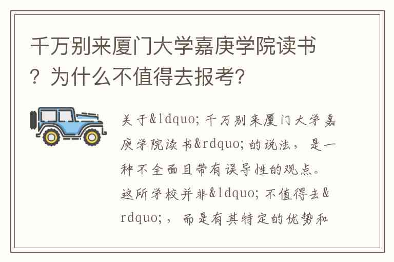 关于“千万别来厦门大学嘉庚学院读书”的说法,是一种不全面且带有误导性的观点。这所学校并非“不值得去”,而是有其特定的优势和需要注意的方面,是否适合报考取决于你的个人情况。