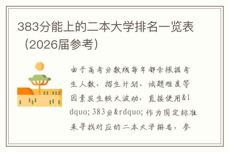 由于高考分数线每年都会根据考生人数、招生计划、试题难度等因素发生较大波动,直接使用“383分”作为固定标准来寻找对应的二本大学排名,参考价值有限。