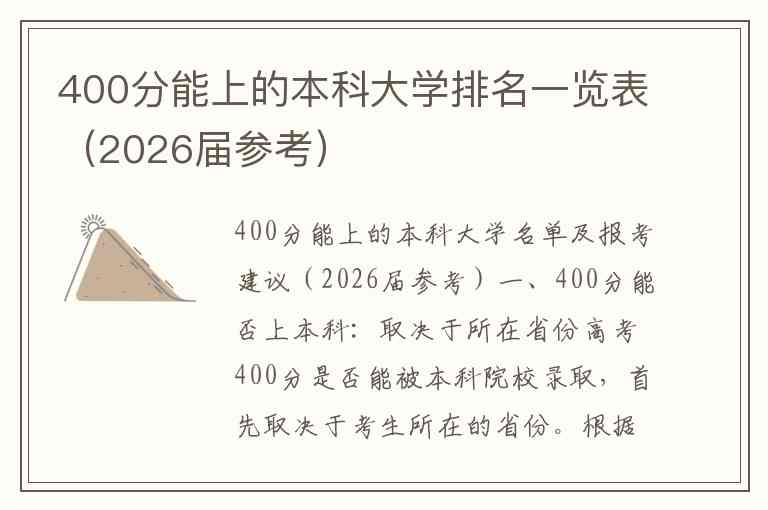 而在河南、河北、山东、广东、四川等生源大省,本科录取分数线普遍较高,400分可能处于本科线边缘或以下,报考本科院校的竞争较为激烈。