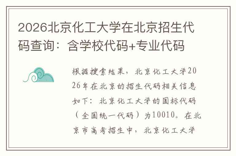 根据搜索结果,北京化工大学2026年在北京的招生代码相关信息如下:
