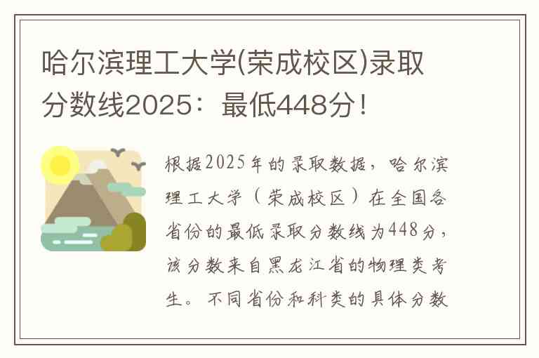 根据2025年的录取数据,哈尔滨理工大学(荣成校区)在全国各省份的最低录取分数线为448分,该分数来自黑龙江省的物理类考生。