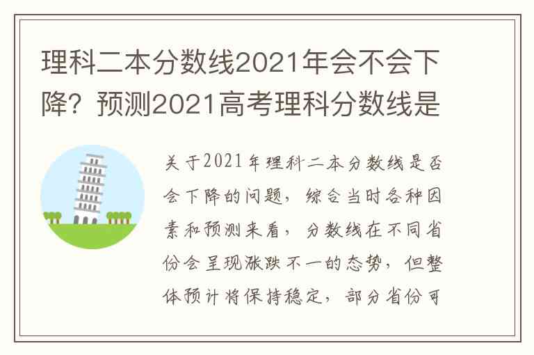 关于2021年理科二本分数线是否会下降的问题,综合当时各种因素和预测来看,分数线在不同省份会呈现涨跌不一的态势,但整体预计将保持稳定,部分省份可能会有小幅波动,大幅下降的可能性较小。