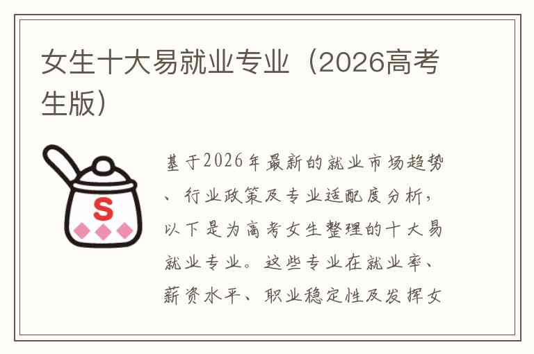基于2026年最新的就业市场趋势、行业政策及专业适配度分析,以下是为高考女生整理的十大易就业专业。这些专业在就业率、薪资水平、职业稳定性及发挥女性特质方面均表现突出。