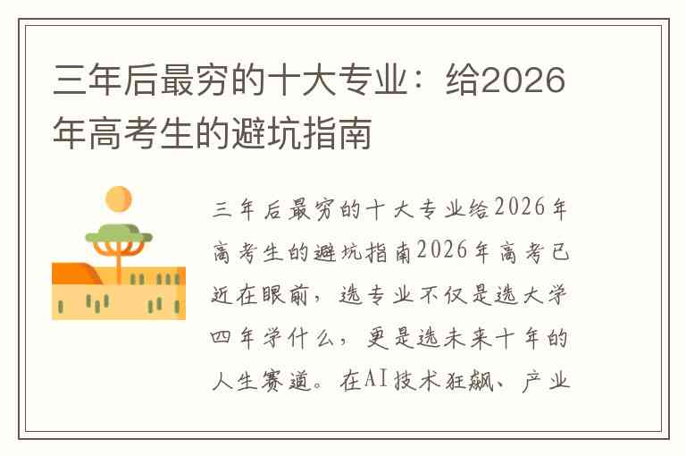 三年后最穷的十大专业给2026年高考生的避坑指南