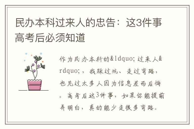 作为民办本科的“过来人”,我踩过坑、走过弯路,也见过太多人因为信息差而后悔。高考后这3件事,如果你能提前弄明白,真的能少走很多弯路。