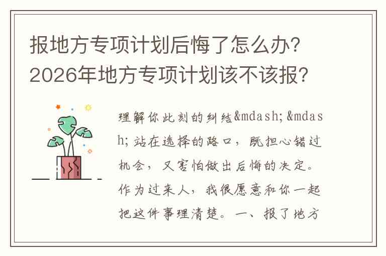 地方专项计划对你而言主要是“保底选项”。建议填报时只选择你真正愿意去的院校和专业,不服从调剂,即便没录取也不影响后续批次。