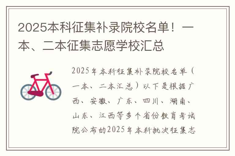 2025年本科征集补录院校名单(一本、二本汇总)