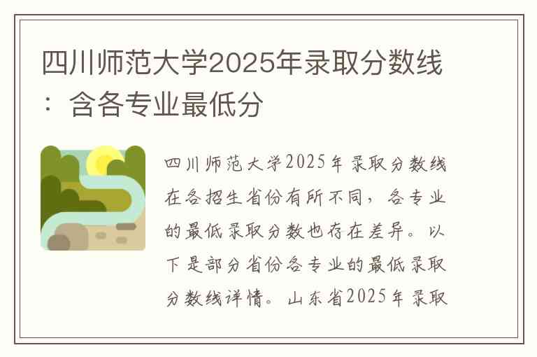 四川师范大学2025年录取分数线在各招生省份有所不同,各专业的最低录取分数也存在差异。以下是部分省份各专业的最低录取分数线详情。