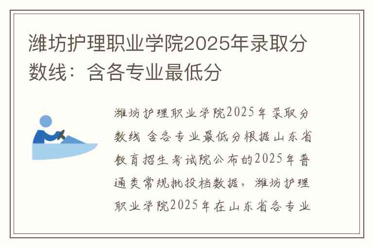 潍坊护理职业学院2025年录取分数线 含各专业最低分