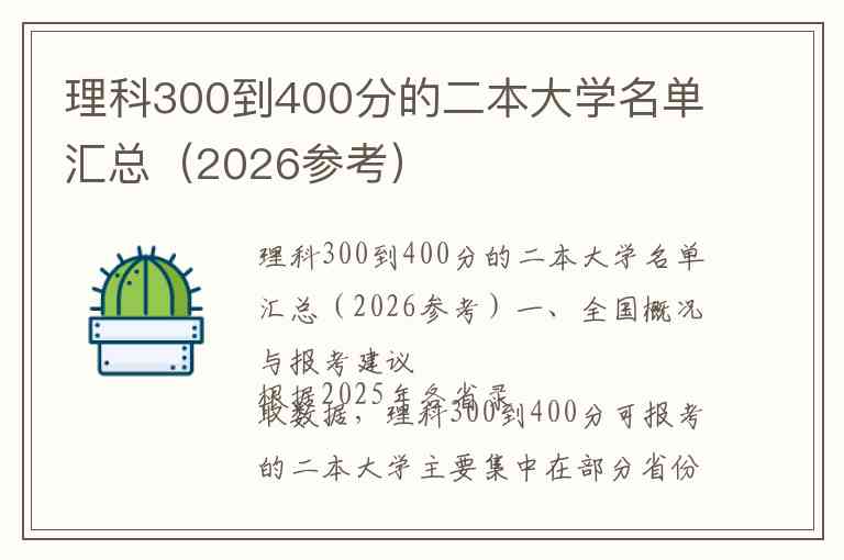 根据2025年各省录取数据,理科300到400分可报考的二本大学主要集中在部分省份的本科线附近或存在降分录取机会的院校。2026年理科二本线预估区间为360-400分,因此300-400分属于本科线上下的范围,考生可重点关注以下几类院校: