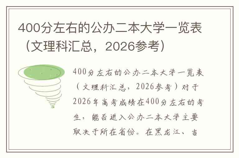 400分左右的公办二本大学一览表(文理科汇总,2026参考)