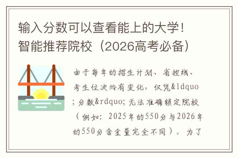 由于每年的招生计划、省控线、考生位次均有变化,仅凭“分数”无法准确锁定院校(例如:2025年的550分与2026年的550分含金量完全不同)。