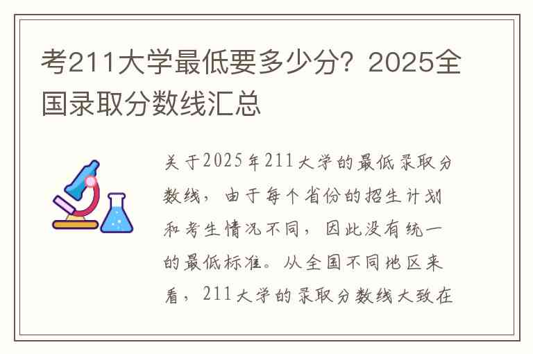 关于2025年211大学的最低录取分数线,由于每个省份的招生计划和考生情况不同,因此没有统一的最低标准。从全国不同地区来看,211大学的录取分数线大致在372分至700分之间。