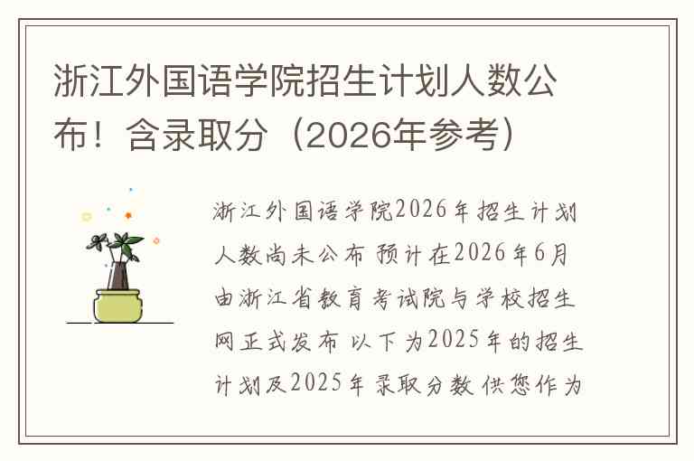 浙江外国语学院2026年招生计划人数尚未公布 预计在2026年6月由浙江省教育考试院与学校招生网正式发布 以下为2025年的招生计划及2025年录取分数 供您作为2026年报考的重要参考
