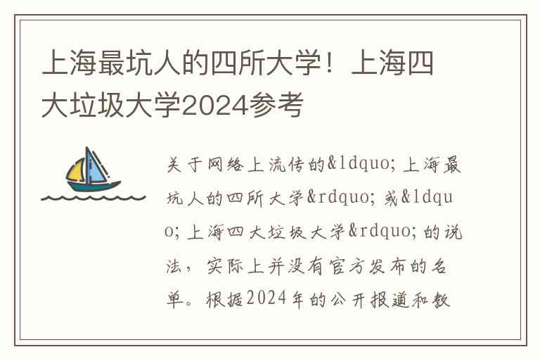 关于网络上流传的“上海最坑人的四所大学”或“上海四大垃圾大学”的说法,实际上并没有官方发布的名单。根据2024年的公开报道和教育部公布的野鸡大学名单,这些说法通常指向两类院校:一类是没有招生资质的虚假大学(野鸡大学),另一类是存在争议的民办高校。