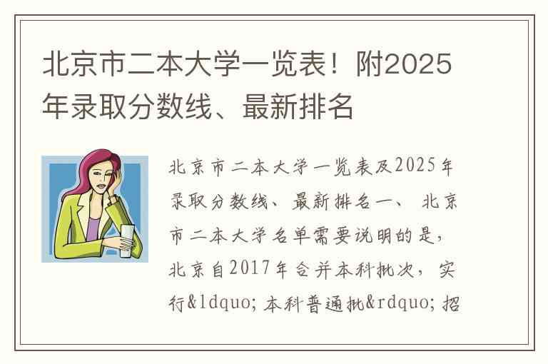 北京市二本大学一览表及2025年录取分数线、最新排名