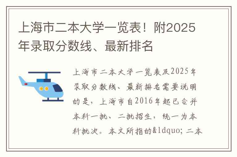 上海市二本大学一览表及2025年录取分数线、最新排名