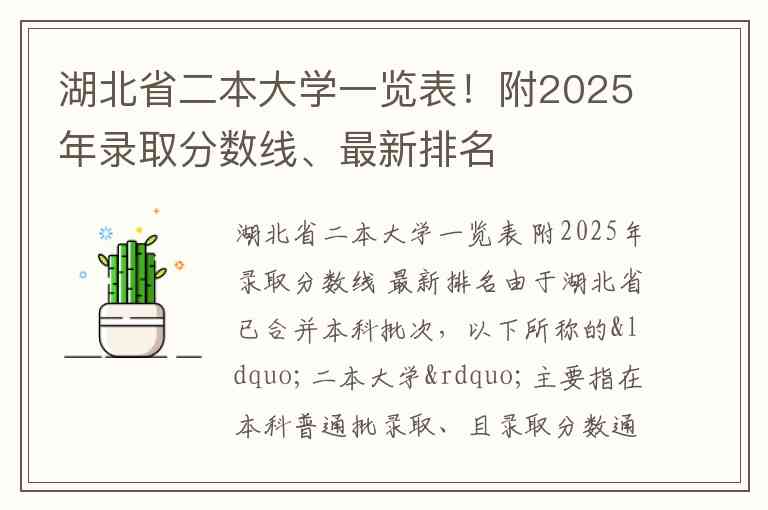 湖北省二本大学一览表 附2025年录取分数线 最新排名